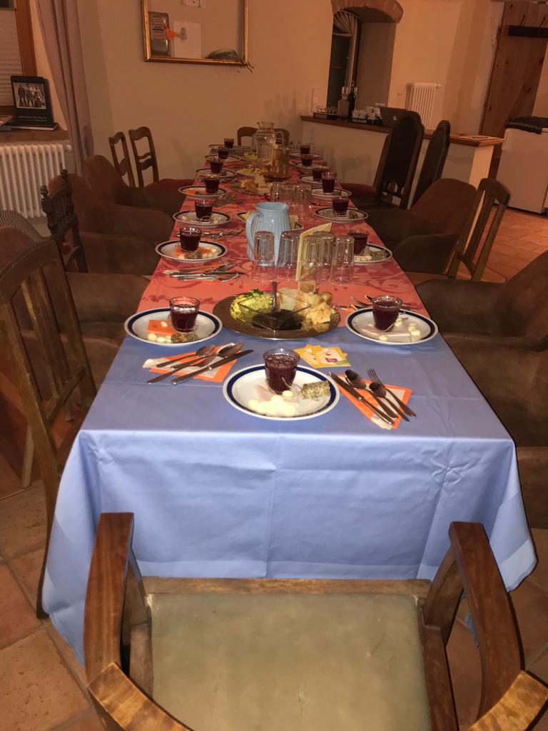 In privater Atmosphäre ist die Tafel reich gedeckt, von Omas gutem Geschirr machen wir Gebrauch. Serviert wird ein 6 Gänge Menü. Angereichert wird das Essen mit Ernährungstipps der Köchin.